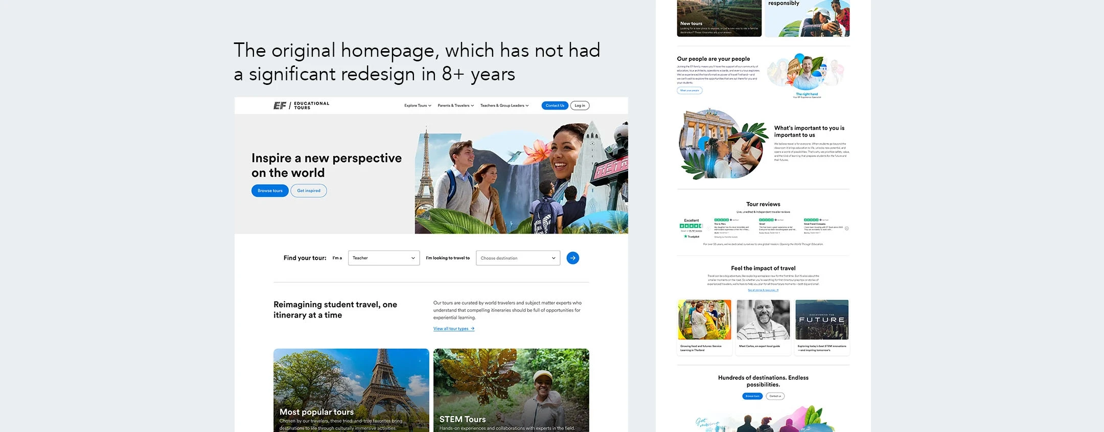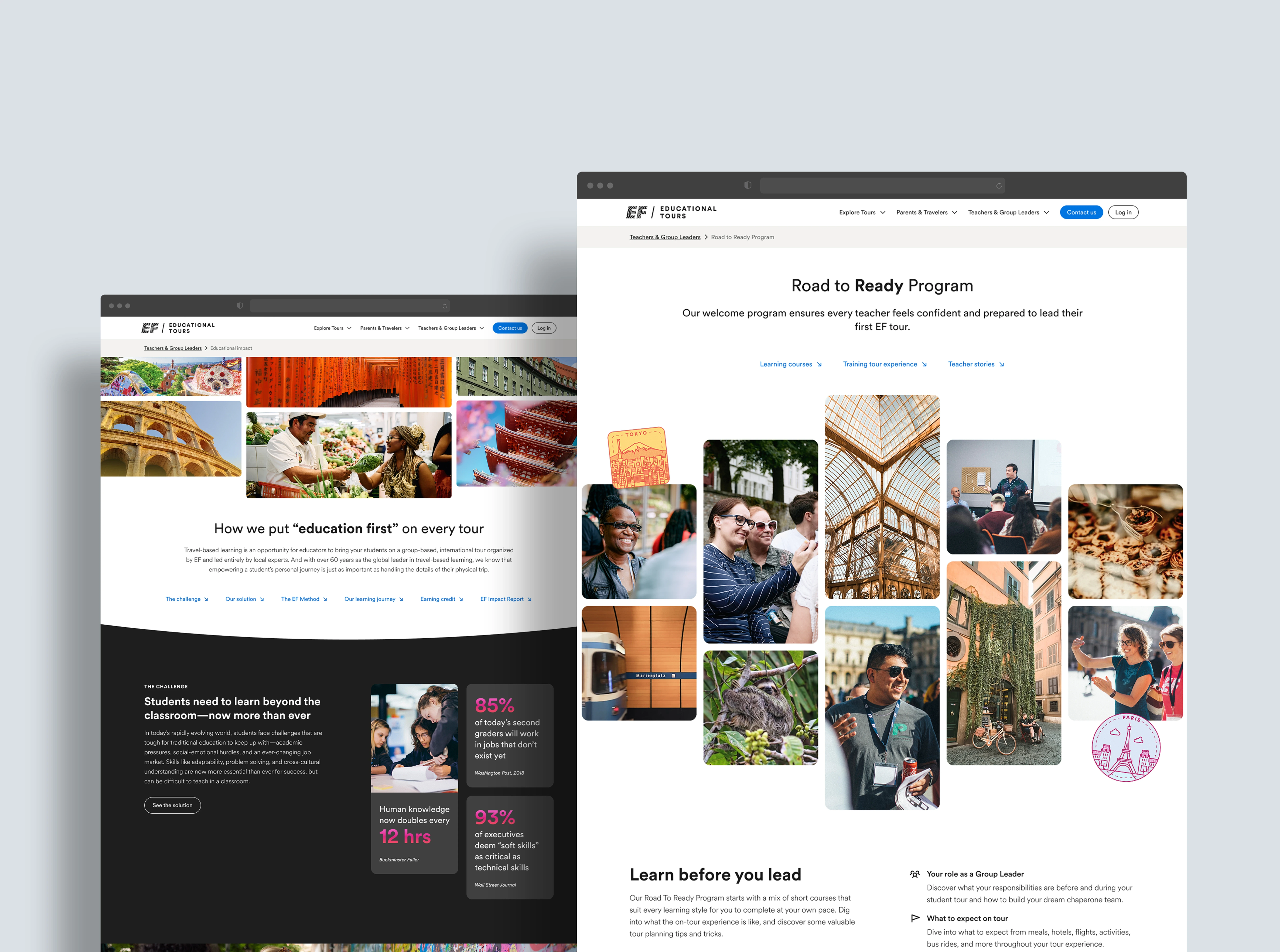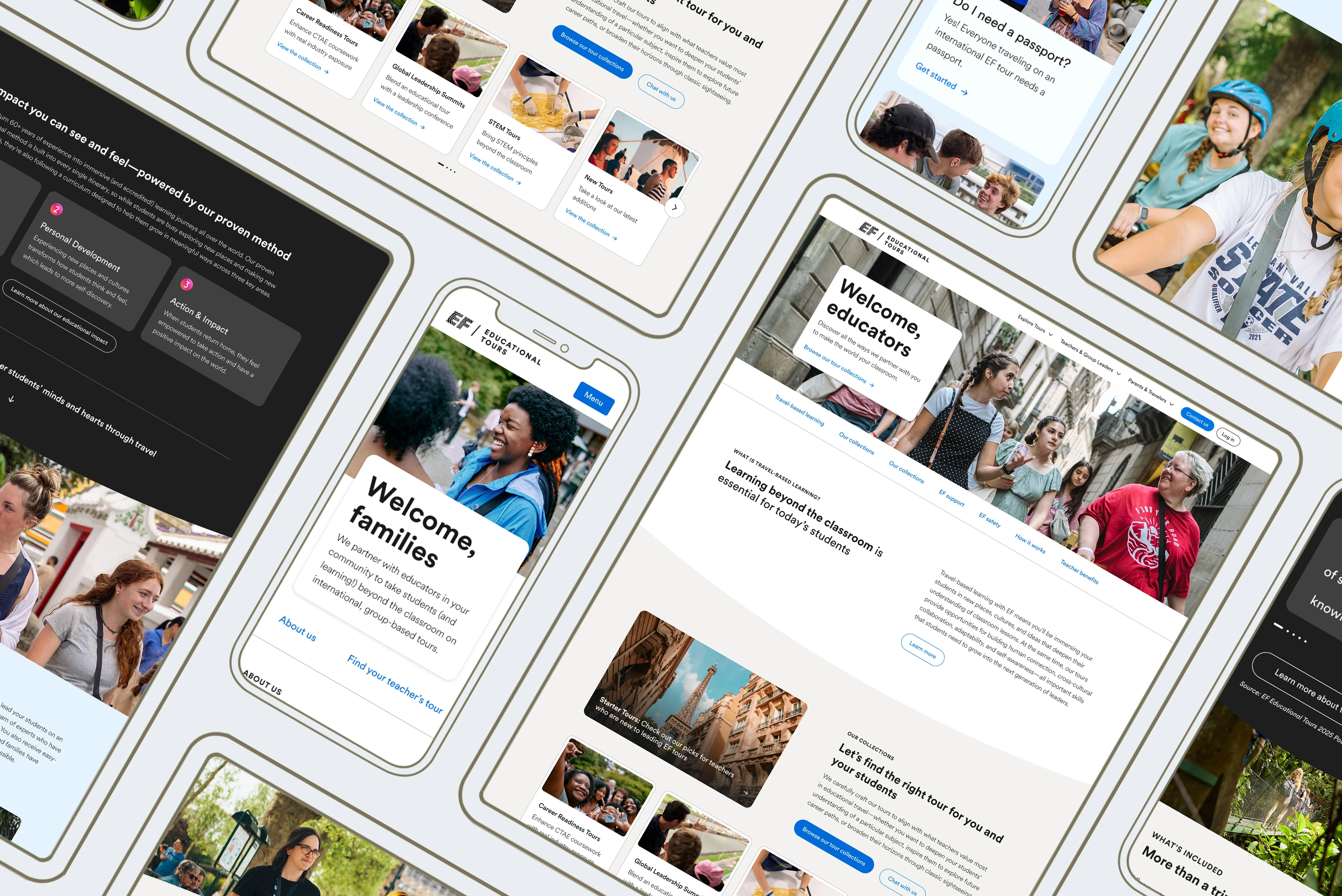 EF Tours was going through a brand refresh as this project was underway, so in order to reduce the need for major visual redesigns in the future, I:
