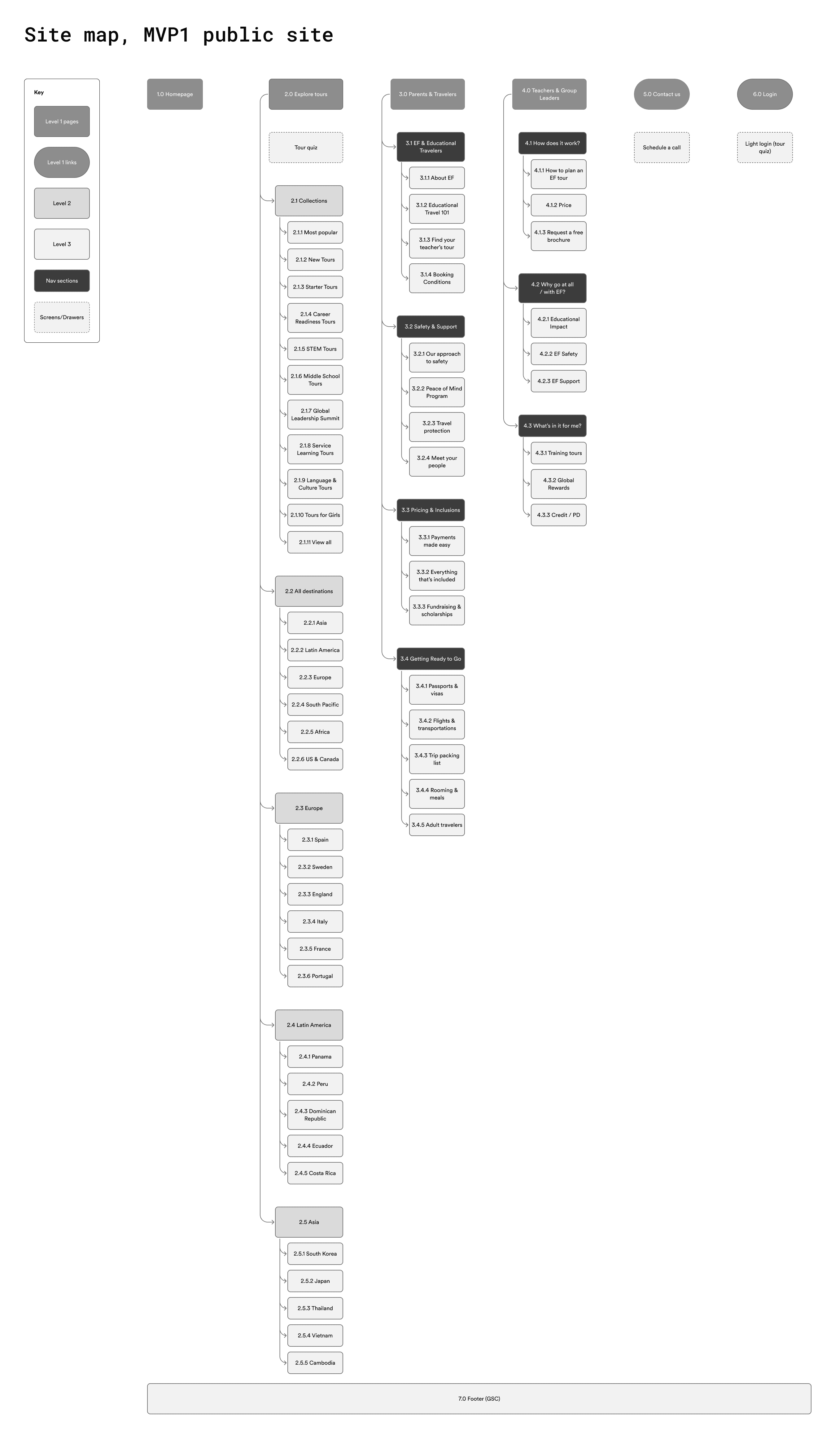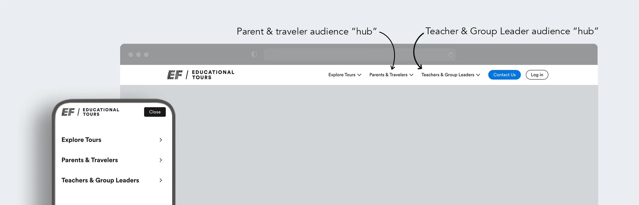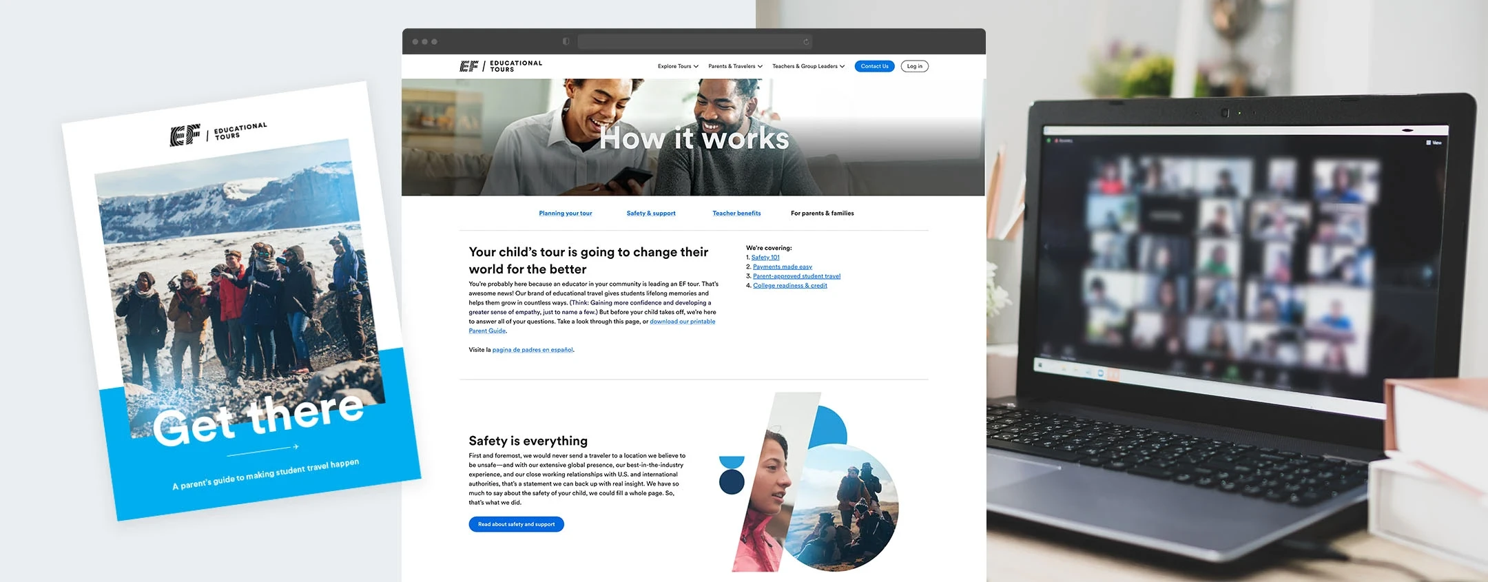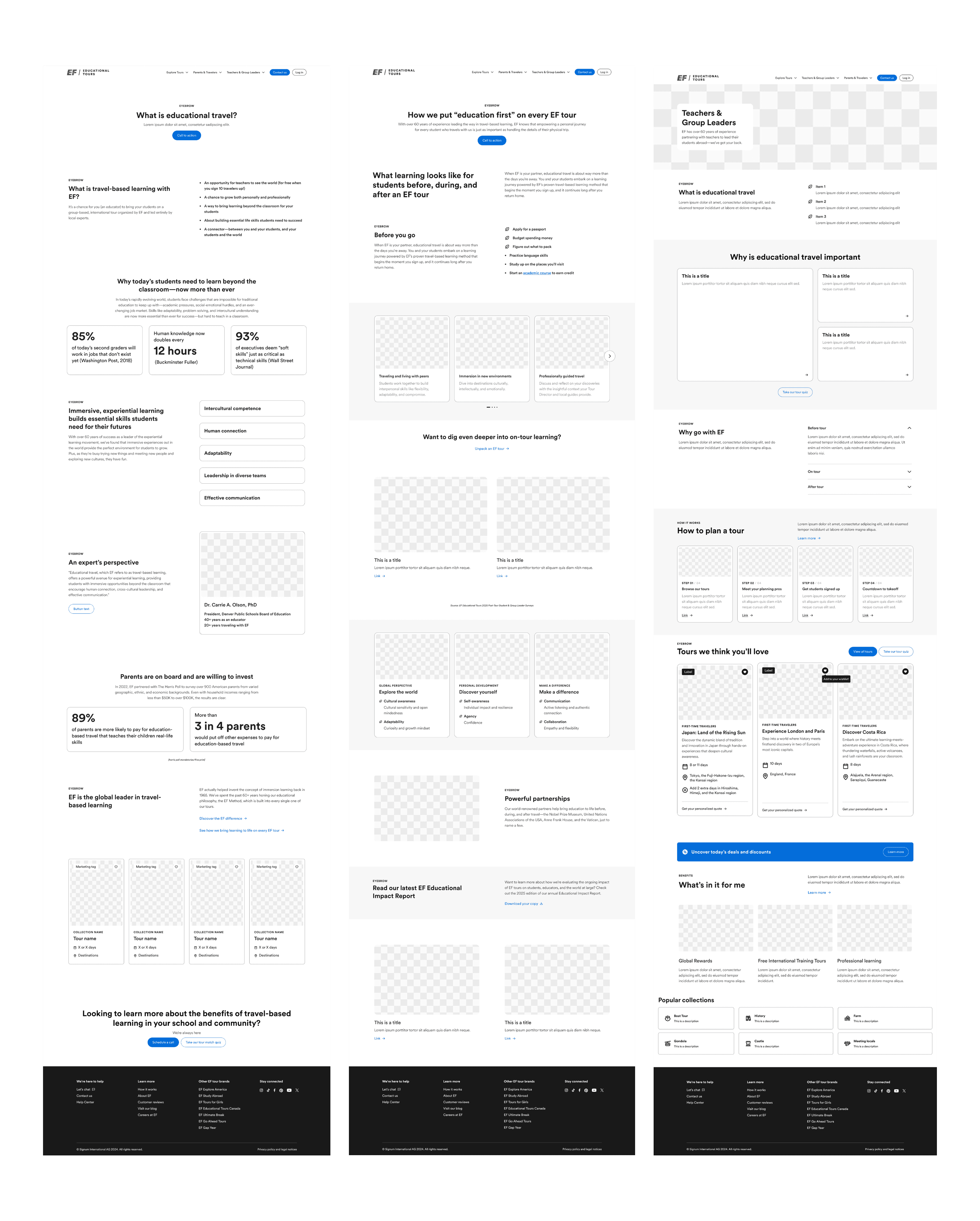 Redesigned EF Tours' public website experience by building audience-specific hub pages and a research-backed Parent Hub to serve the site's majority visitors—parents and student travelers—who were previously underserved by a teacher-first content structure.