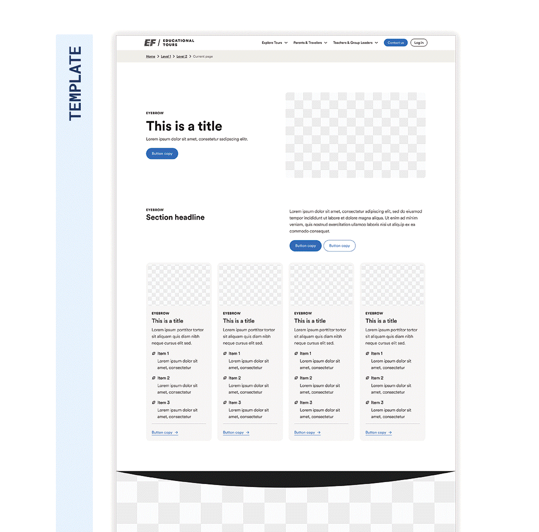 EF Tours was in the middle of a brand refresh when this project began, which meant any system I built needed to be resilient to change. Rather than starting from zero, I built the library on top of EF's centralized global component library, customizing from there and structuring patterns for our brand.