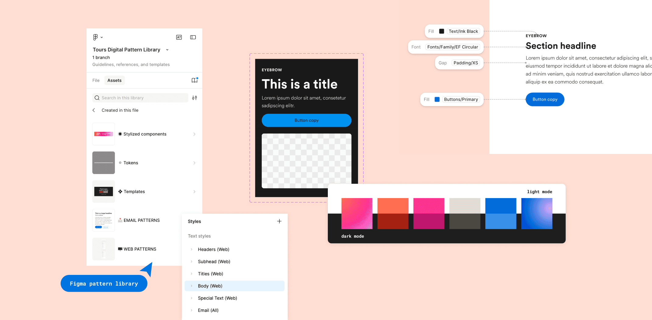 I built a Figma-based pattern library from the ground up to bring consistency, scalability, and speed to EF Tours' public marketing website and customer emails.